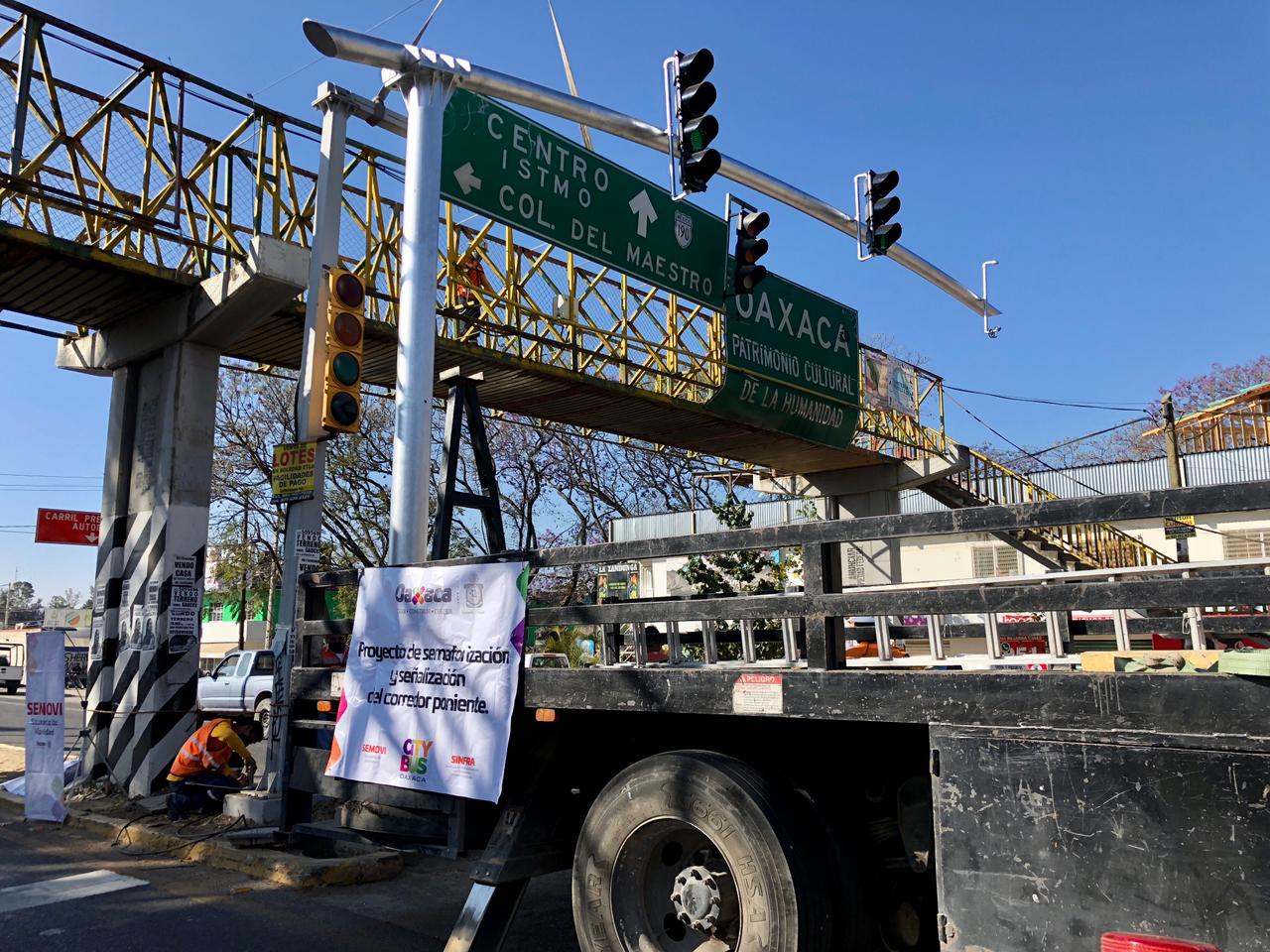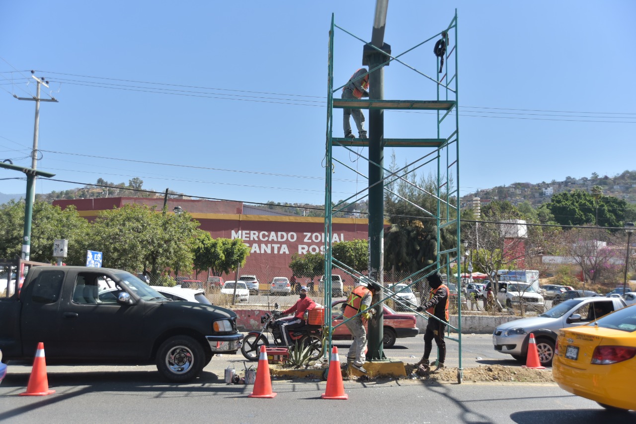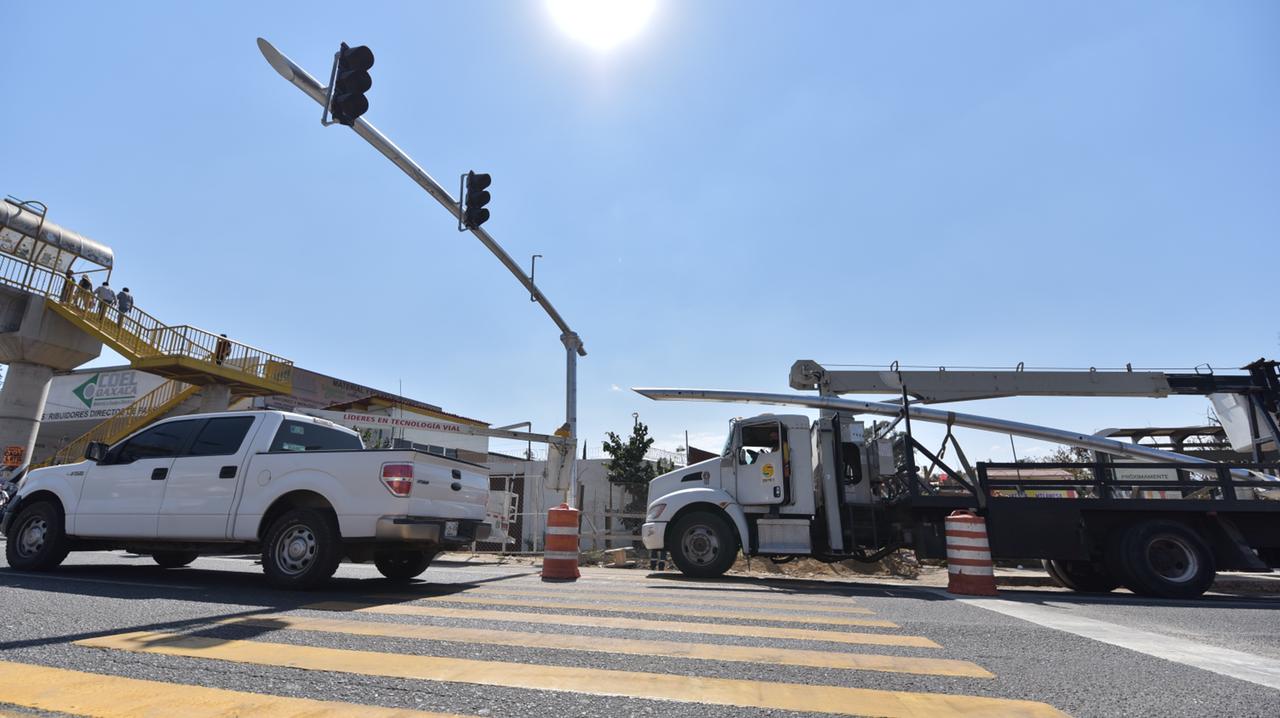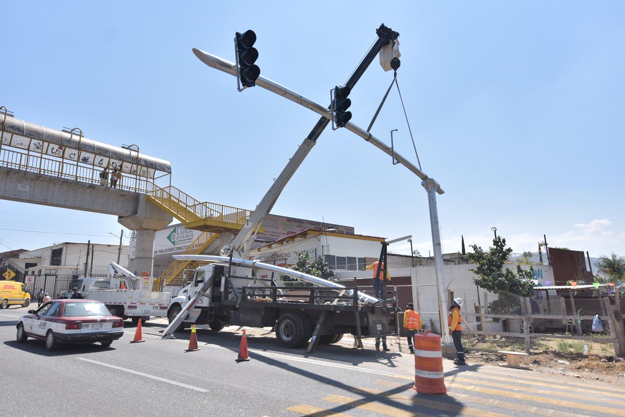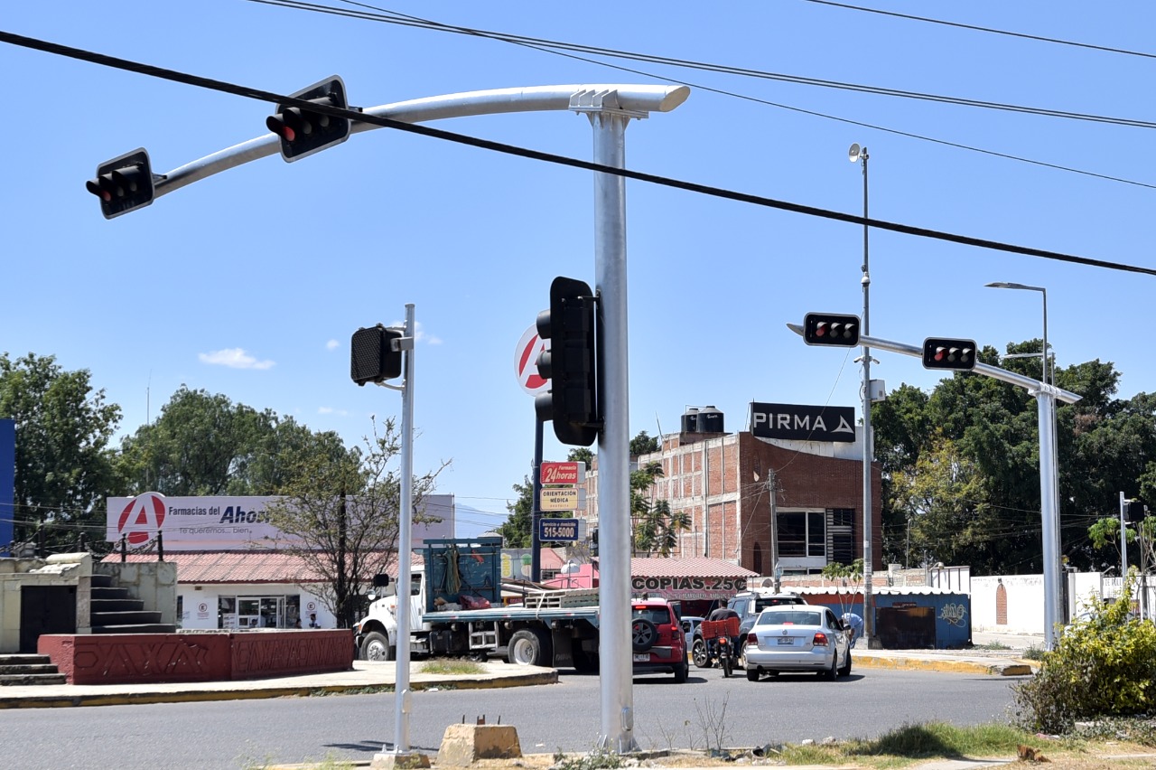 Los trabajos de modernización del sistema de semaforización, con tecnología inteligente se realizan en 48 intersecciones del crucero de San Lorenzo Cacaotepec al municipio de Santa Cruz Xoxocotlán; interviniendo entre ellos los cruceros de la Central de Abasto y el Parque del Amor.