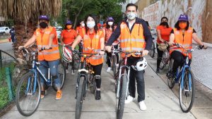 En compañía del titular de Semovi, Arturo Eleazar López Sorroza, Vásquez Colmenares hizo un llamado a la sociedad en general a respetar la movilidad en bicicleta y reconocerla como un medio de transporte saludable, que a las mujeres les brinda autonomía, libertad, empoderamiento, asegurándonos que la movilidad de las mujeres esté libre de la violencia sexual, el acoso y toqueteo que en transporte público se padece a diario.