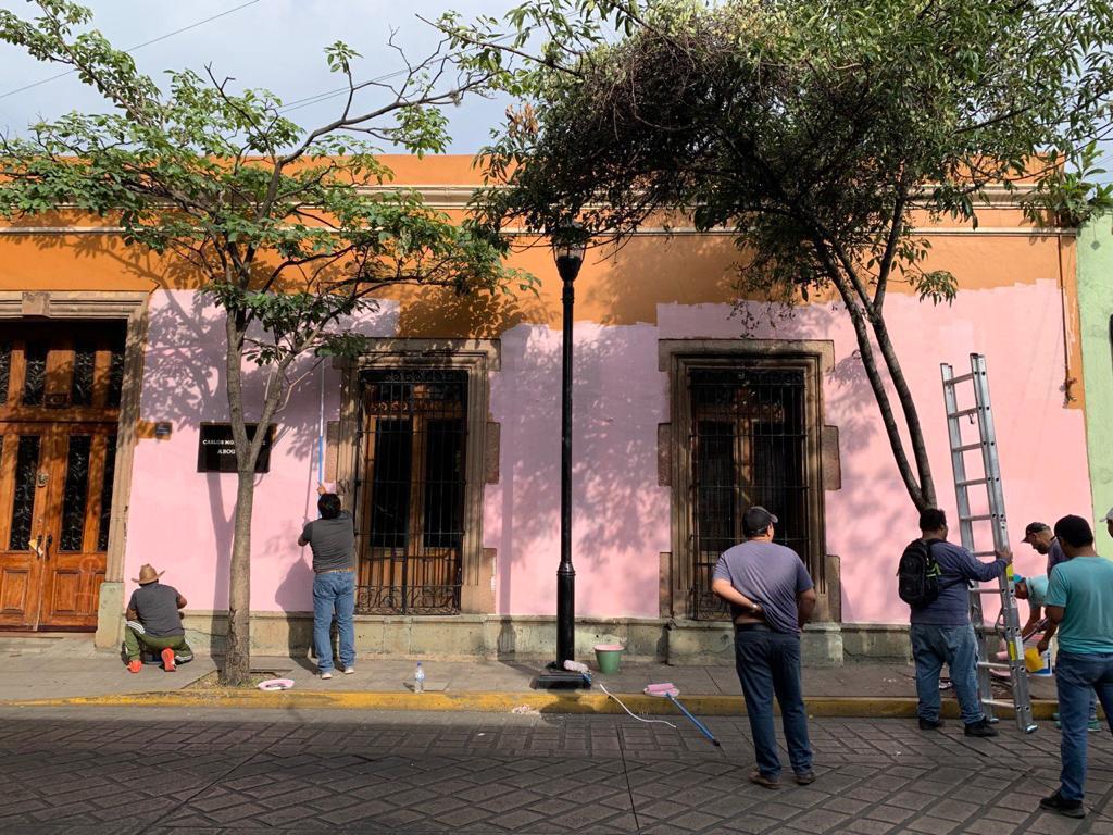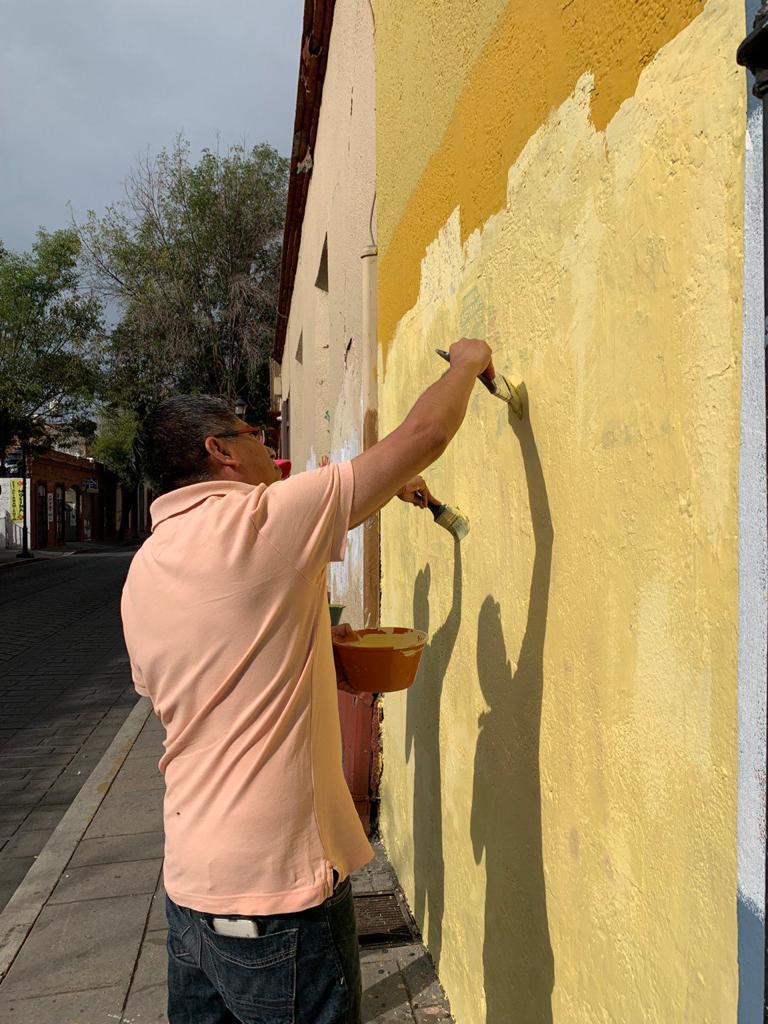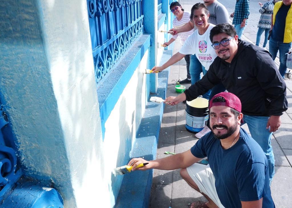 Durante este tequio bienestar se realizó el barrido de banquetas, pinta de guarniciones y fachadas en las calles que conforman la ruta del Convite de las Delegaciones, desde avenida Porfirio Díaz, avenida Juárez y la calle de Abasolo, hasta el Andador Turístico o calle de Macedonio Alcalá.