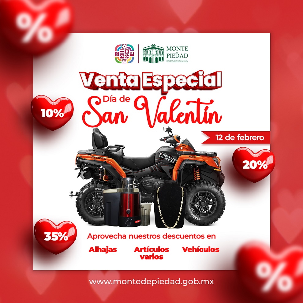Oaxaca de Juárez, Oax., 2 de febrero de 2024.- El Monte de Piedad del Estado de Oaxaca realizará este lunes 12 de febrero en sus 21 sucursales y matriz, una venta especial enmarcada en su 91 aniversario.