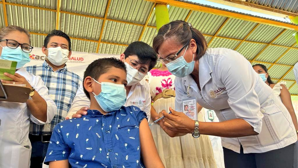 Desde la comunidad de Santa María Huazolotitlán, perteneciente al distrito de Santiago Jamiltepec en la región de la Costa, la Titular de la dependencia, precisó que en esta segunda edición de la estrategia Federal se aplicaron dosis del Cuadro Básico de Vacunación en menores de seis años.