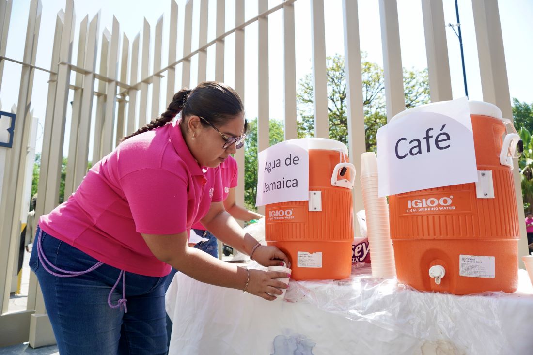 Como parte de esta atención y retomando las buenas prácticas que catalogan a Oaxaca como un destino cálido, hospitalario y cercano a la gente, se repartió café y pan durante la noche y la madrugada, así como aguas de sabor a mediodía, a las personas que llegaron a formarse.