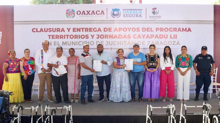 Heroica Ciudad de Juchitán de Zaragoza, Oax. 10 de diciembre de 2025.- El Gobierno de Oaxaca cerró las Jornadas y Territorios Cayapadu Lii en la Heroica Ciudad de Juchitán de Zaragoza, donde se otorgaron más de 2 mil 500 apoyos directos a familias de los polígonos con mayor rezago social e incidencia delictiva.