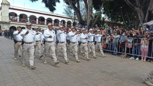 Asimismo, reconoció el grado de marcialidad, adiestramiento y los valores institucionales que pusieron en práctica los agrupamientos estatales durante el Desfile Cívico-Militar que se realizó en las principales calles de la ciudad capital.
