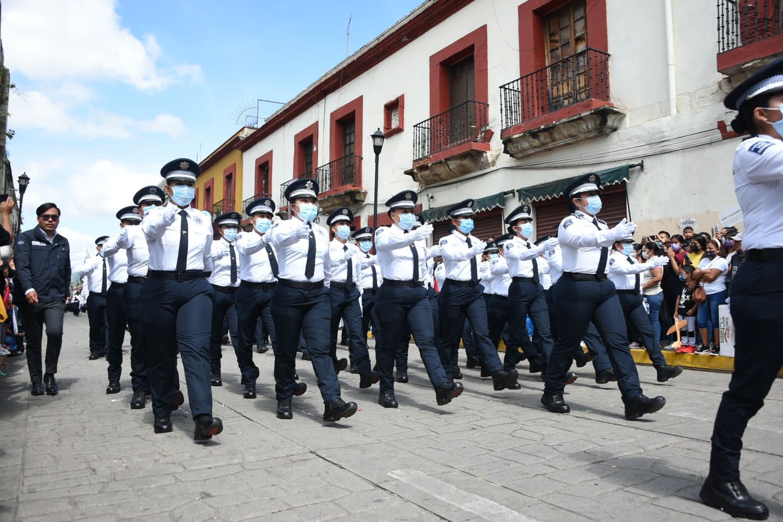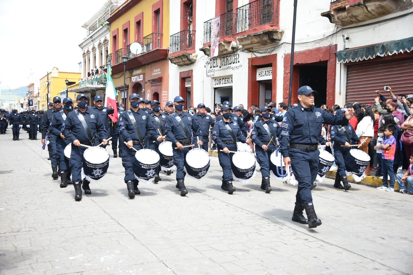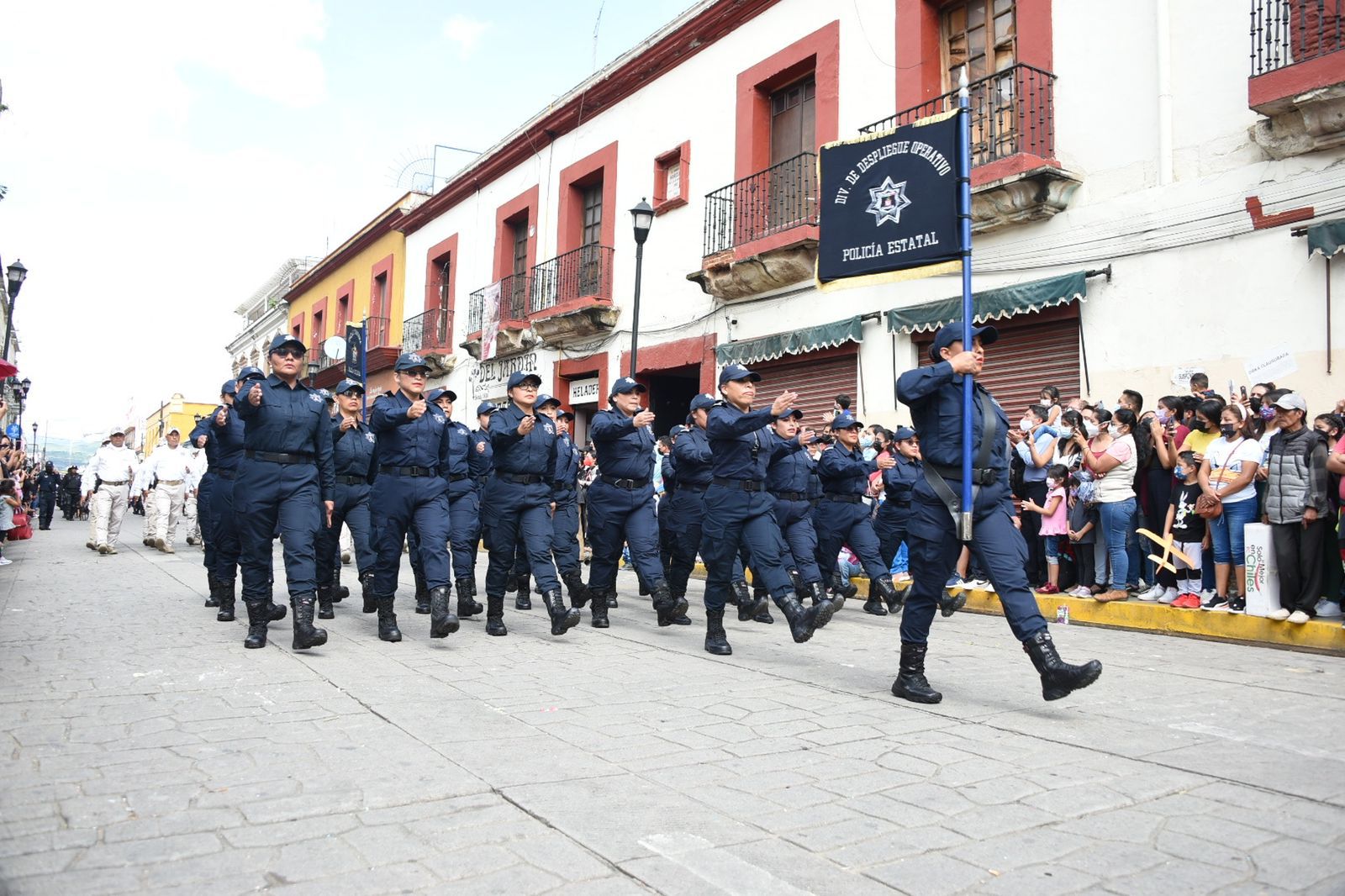 Asimismo, reconoció el grado de marcialidad, adiestramiento y los valores institucionales que pusieron en práctica los agrupamientos estatales durante el Desfile Cívico-Militar que se realizó en las principales calles de la ciudad capital.