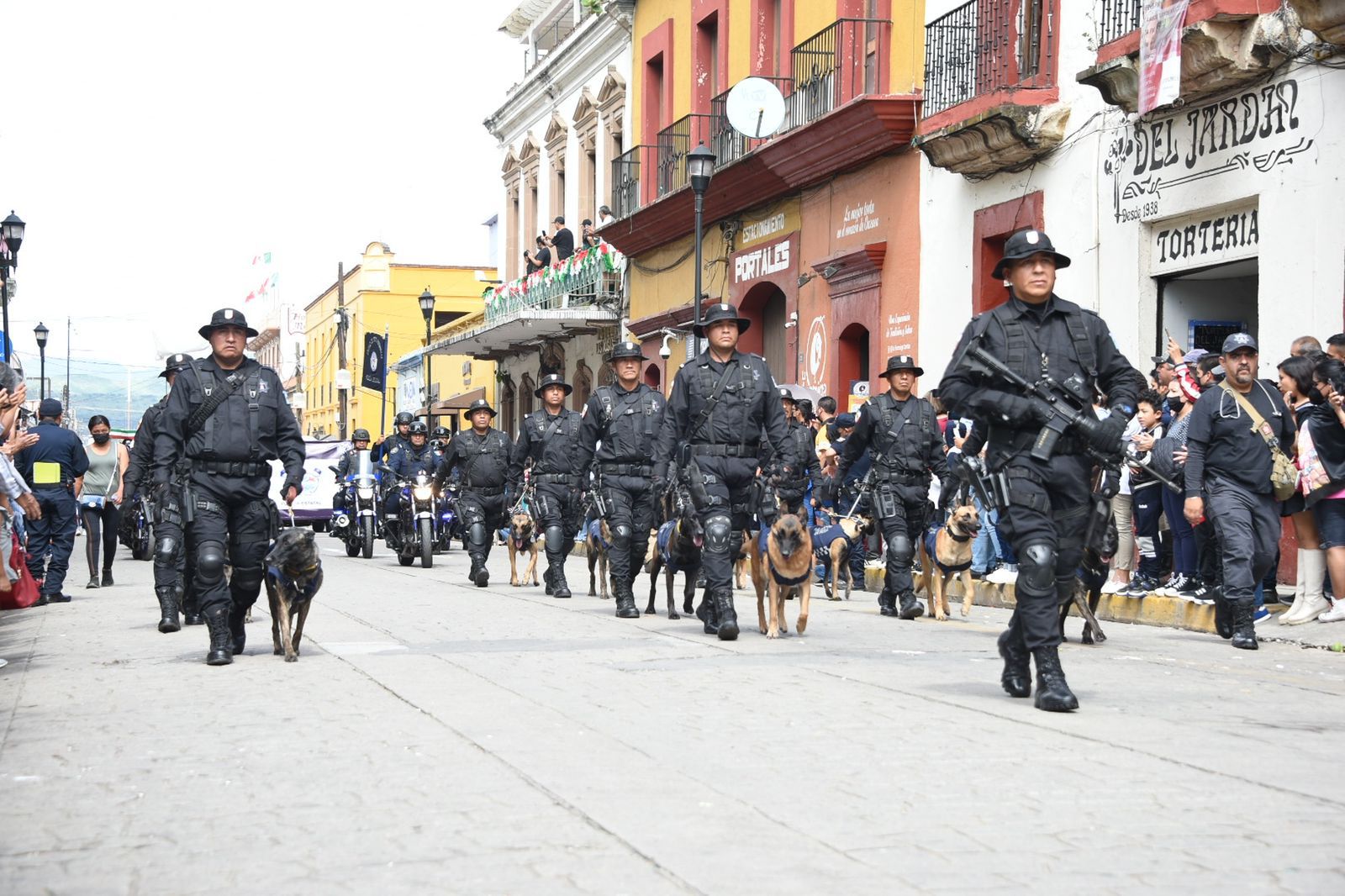 Cabe señalar que este año, la parada Cívico-Militar estuvo conformada por nueve agrupamientos con un total aproximado de más de 2 mil 700 elementos militares, de seguridad pública, pentatlón militarizado, escolares, banda de guerra, auxilio y emergencias y carros.