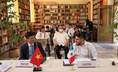 Durante su gira de trabajo, el representante de la República Socialista de Vietnam en nuestro país se reunió con funcionarias y funcionarios del Gobierno estatal encabezados por Fernanda Schmidt Ruiz, subsecretaria de Operación turística de la Secretaría de Turismo, con quienes evaluó la posibilidad de promover en su nación las bellezas naturales, arquitectónicas e históricas que tiene el estado.