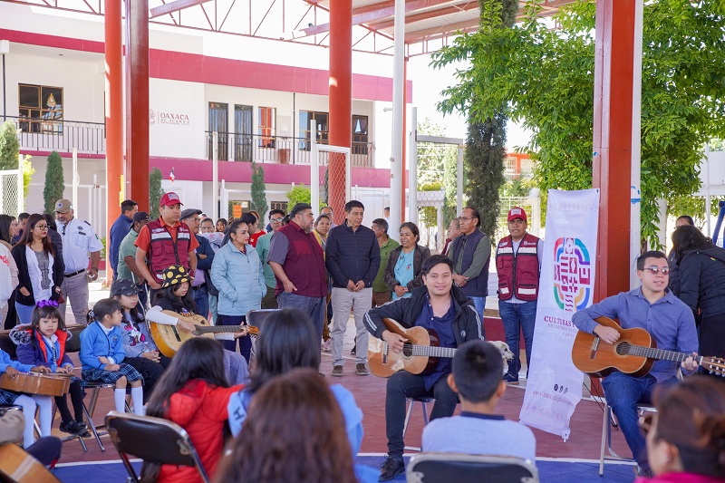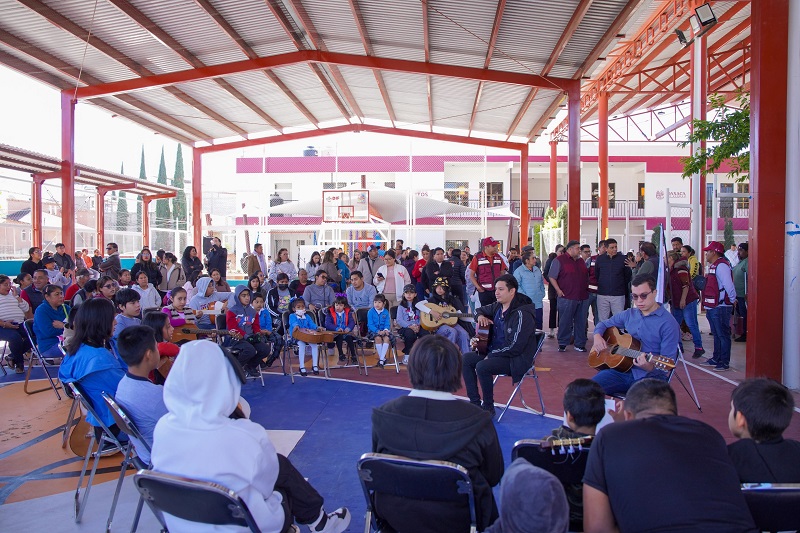 En este marco, el Mandatario apreció una clase de música que se imparte en este espacio recuperado. Previamente, también constató una clase de entrenamiento de futbol en la cancha de la colonia Azucena, en la agencia San Martín Mexicapam de Cárdenas.