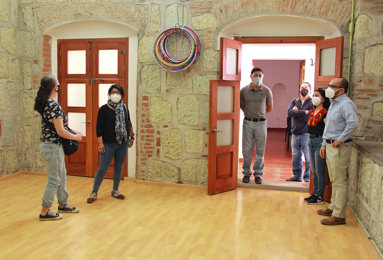 Oaxaca de Juárez, Oax. 22 de febrero de 2021. Talleristas de la Casa de la Cultura Oaxaqueña (CCO), constataron los trabajos de limpieza y mantenimiento que el personal de Servicios Generales ha realizado a los salones y mobiliario de la institución para beneficio de las y los usuarios.