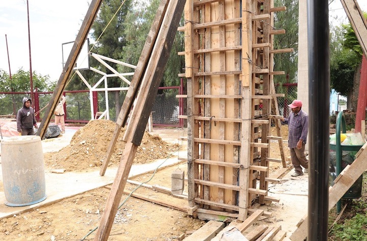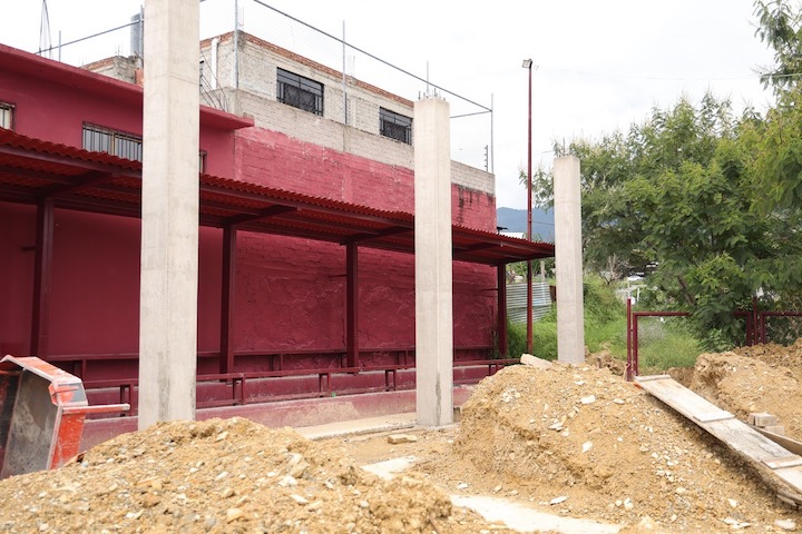 El titular de la dependencia, Carlos Vichido Hernández informó que se trabaja en un área de 624.68 metros cuadrados donde ya se realizaron labores de nivelación de terreno y se colocan columnas de concreto para posteriormente instalar la cubierta con su respectivo sistema de drenaje pluvial.