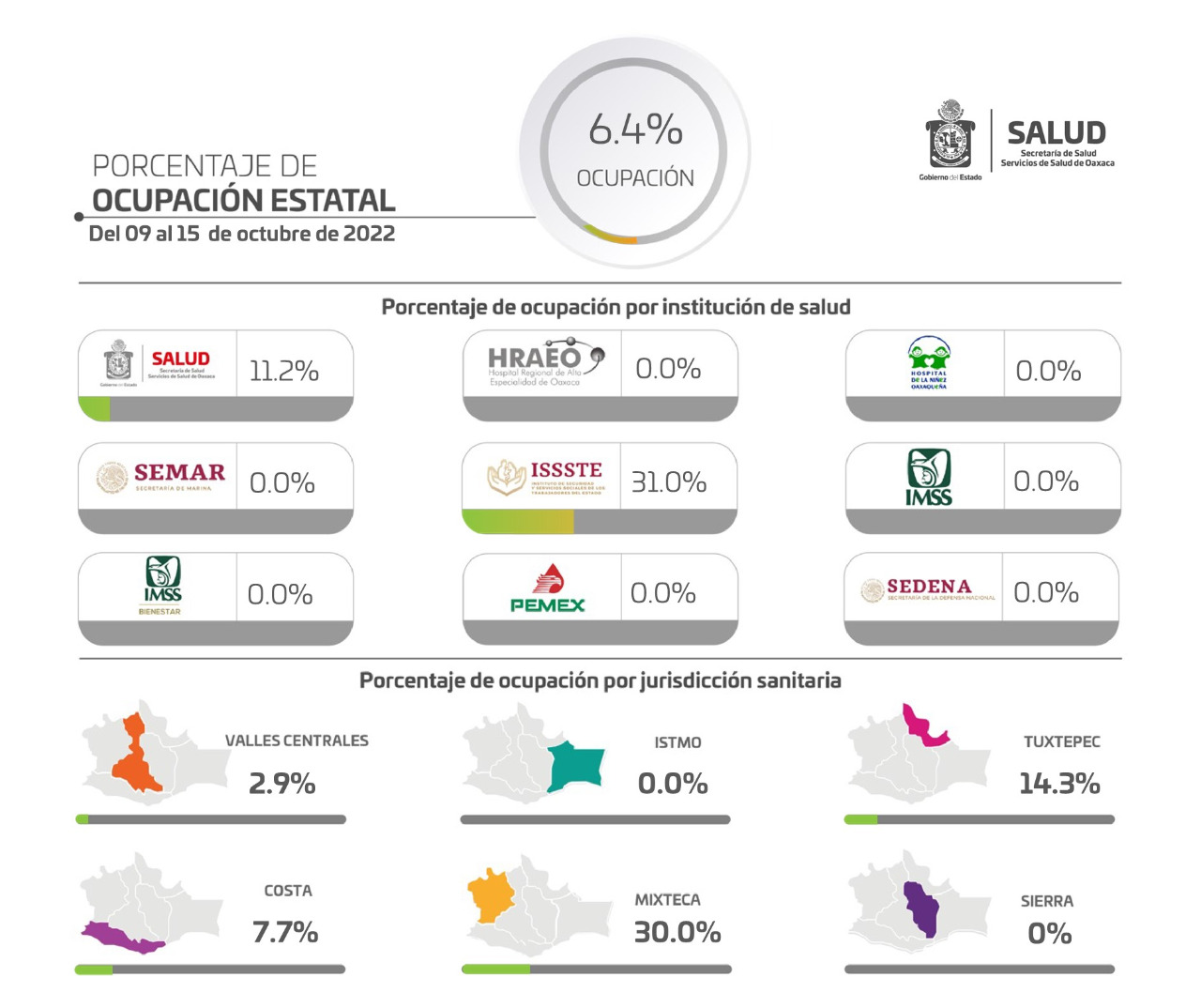 Contabiliza SSO 6.4% de ocupación hospitalaria por COVID-19 en Oaxaca