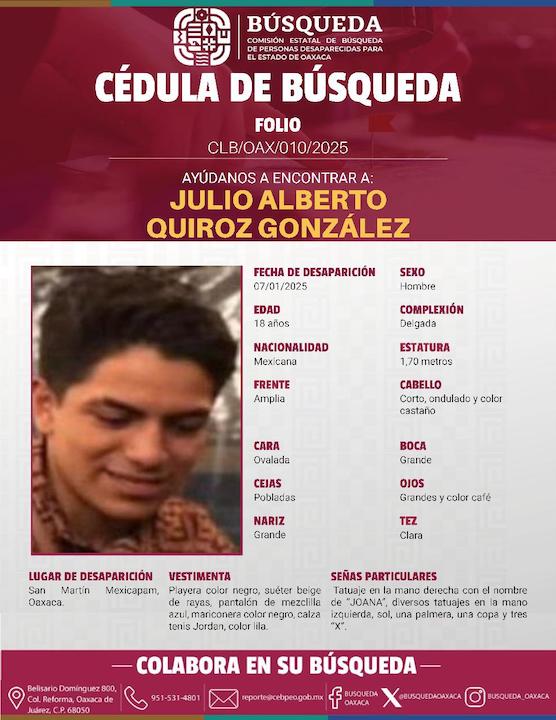 Al respecto, la titular de la CEBPDO, Michel Julián López dio a conocer que la dependencia se reunió con los familiares a fin de recibir las denuncias respecto a las personas que fueron vistas por última vez el 7 de enero de 2025.