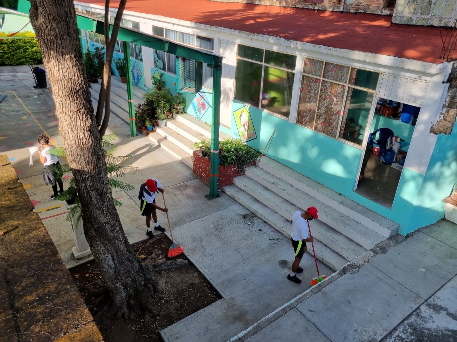 Así también, en el Centro de Atención Psicopedagógica de Educación Preescolar de Oaxaca número VIII de Santa Lucía del Camino, se realizó limpieza, poda y cortado de pasto, pintado interior de cubículos y aulas, así como limpieza de techos y tinacos y en la Escuela Secundaria Técnica 85, de Oaxaca de Juárez, el cortado de pasto, acarreo de basura y limpieza de jardines.