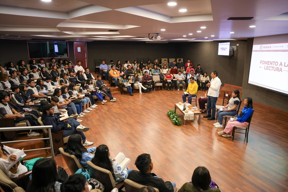En un ameno encuentro al que asistió el Gobernador del Estado Salomón Jara Cruz, contó también con la participación del alumnado de la Preparatoria 5 de la Universidad Autónoma Benito Juárez de Oaxaca (UABJO) y de la Universidad Politécnica de Nochixtlán “Abraham Castellanos”, así como de docentes y personal de la Secretaría de las Culturas y Artes de Oaxaca.