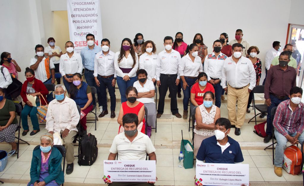 Asimismo, y para resarcir el daño ocasionado a miles de familias oaxaqueñas que perdieron su patrimonio por el cierre masivo de sociedades cooperativas, el Secretario de Bienestar hizo entrega de recursos por casi 400 mil pesos a beneficiarios del Programa Atención a Defraudados por Cajas de Ahorro.