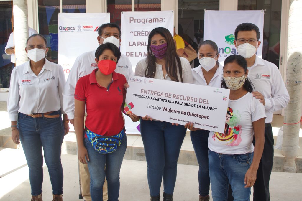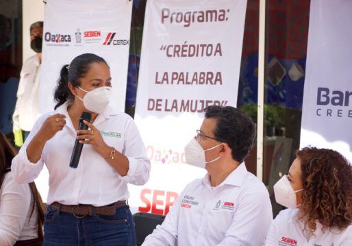 En este marco y acompañado por la presidenta municipal,Maricel Mariscal Gaytán y del director de BanOaxaca, IgmarMedina Matus, el Secretario de Bienestar realizó la entrega de recursos del Programa ´Crédito a la Palabra de la Mujer´ a beneficiarias que realizan actividades en la producción de pan, alimentos, artesanías y ropa.
