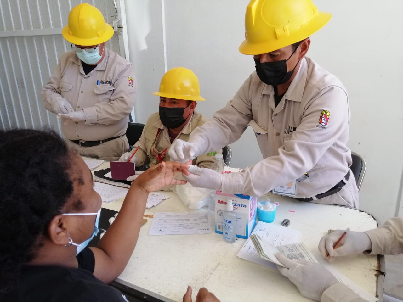 Así también se realizó la toma de signos vitales, temperatura corporal, presión arterial y aplicación de pruebas para detección de hepatitis C, a su vez, se aplicaron exámenes de elección para confirmar o descartar el paludismo a través de la muestra de «gota gruesa» de sangre y dosis contra la influenza a menores de 5 años y población adulta.
