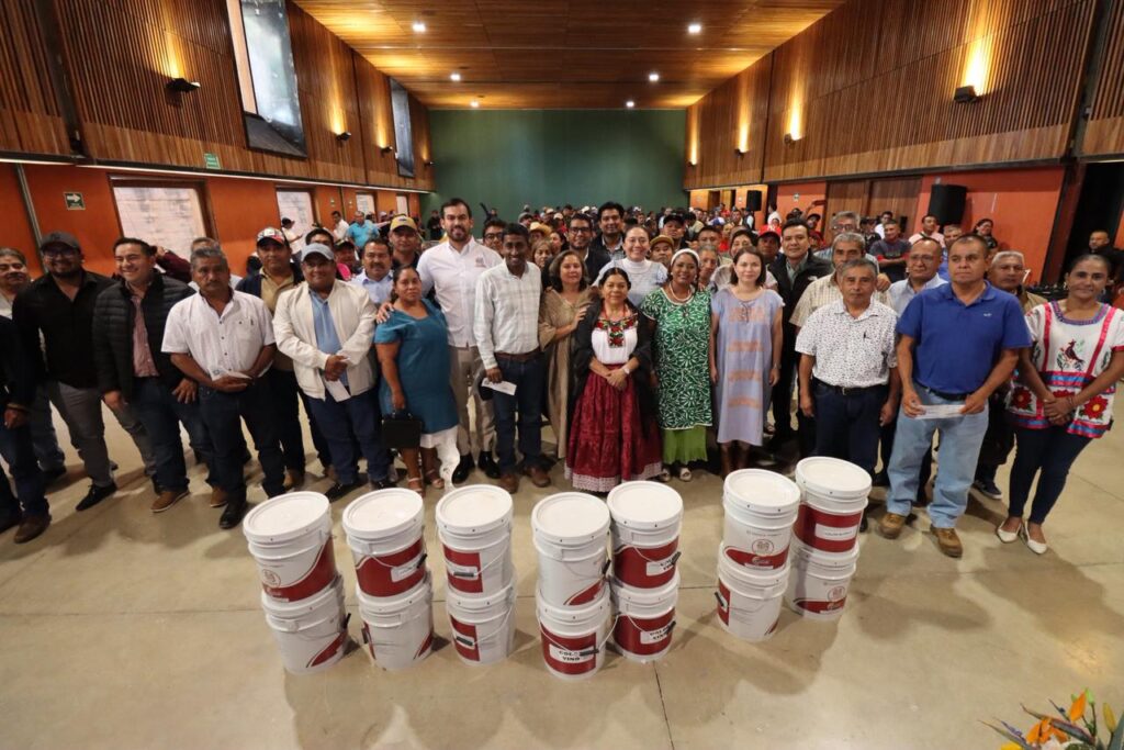 Oaxaca de Juárez, Oax. 18 de noviembre de 2025.- El Gobierno de Oaxaca entregó a 140 autoridades municipales, apoyos del Programa de Mejoramiento Visual de la Infraestructura Comunitaria Indígena y Afromexicana, que contribuye al fortalecimiento de los espacios colectivos.
