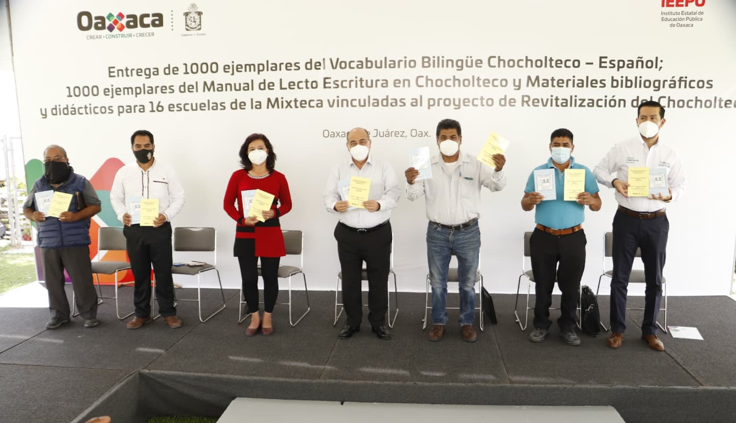 A través del proyecto de Revitalización del Chocholteco, el IEEPO ha impulsado capacitaciones para la enseñanza de la lengua materna impartidas por especialistas del CIESAS, adquisición de materiales bibliográficos y didácticos, así como en la reproducción del Vocabulario Bilingüe Chocholteco – Español y el Manual de Lecto Escritura en Chocholteco, elaborados por hablantes de la zona.