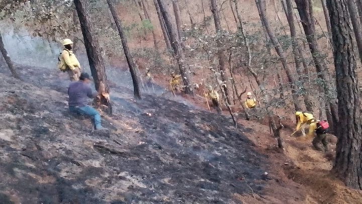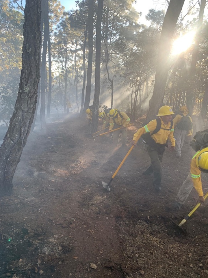 Esta acción fue posible debido al trabajo coordinado del personal técnico en el manejo del fuego de Coesfo, 26 personas comuneras, seis elementos de la policía municipal y ocho autoridades locales.