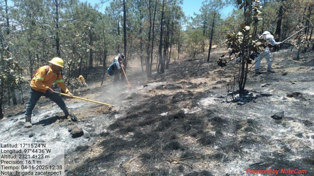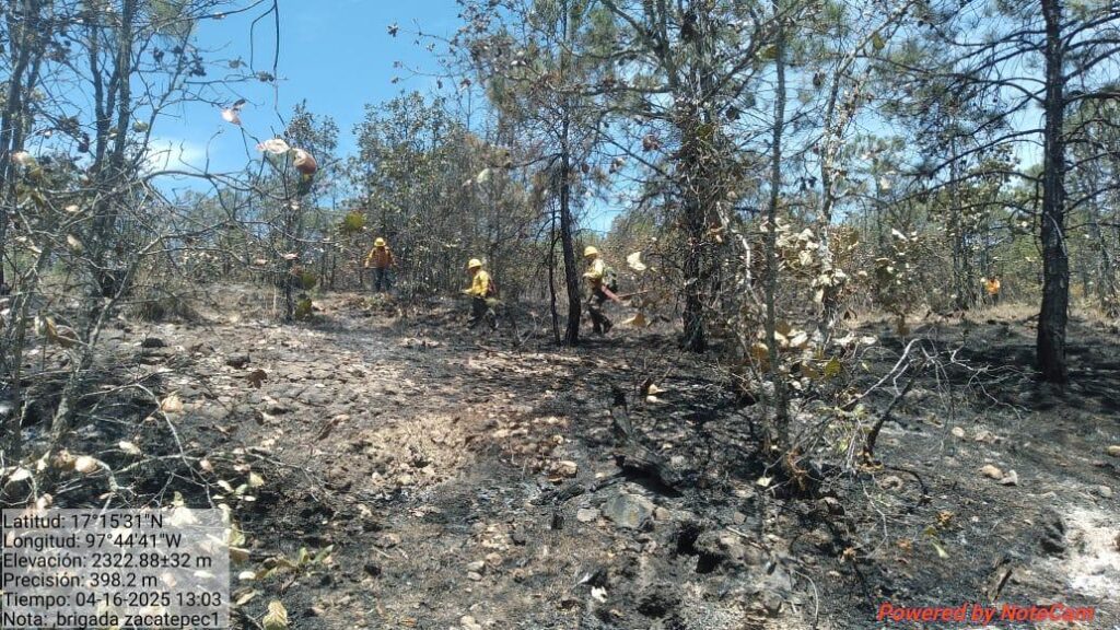 Oaxaca de Juárez, Oax. 18 de abril de 2025.- La Comisión Estatal Forestal (Coesfo) a través de la brigada oficial de combatientes con sede en Santa María Zacatepec, reporta totalmente controlado el incendio registrado en el paraje Cerro Armadillo de la localidad San Miguel, perteneciente al municipio Santa María Zacatepec.