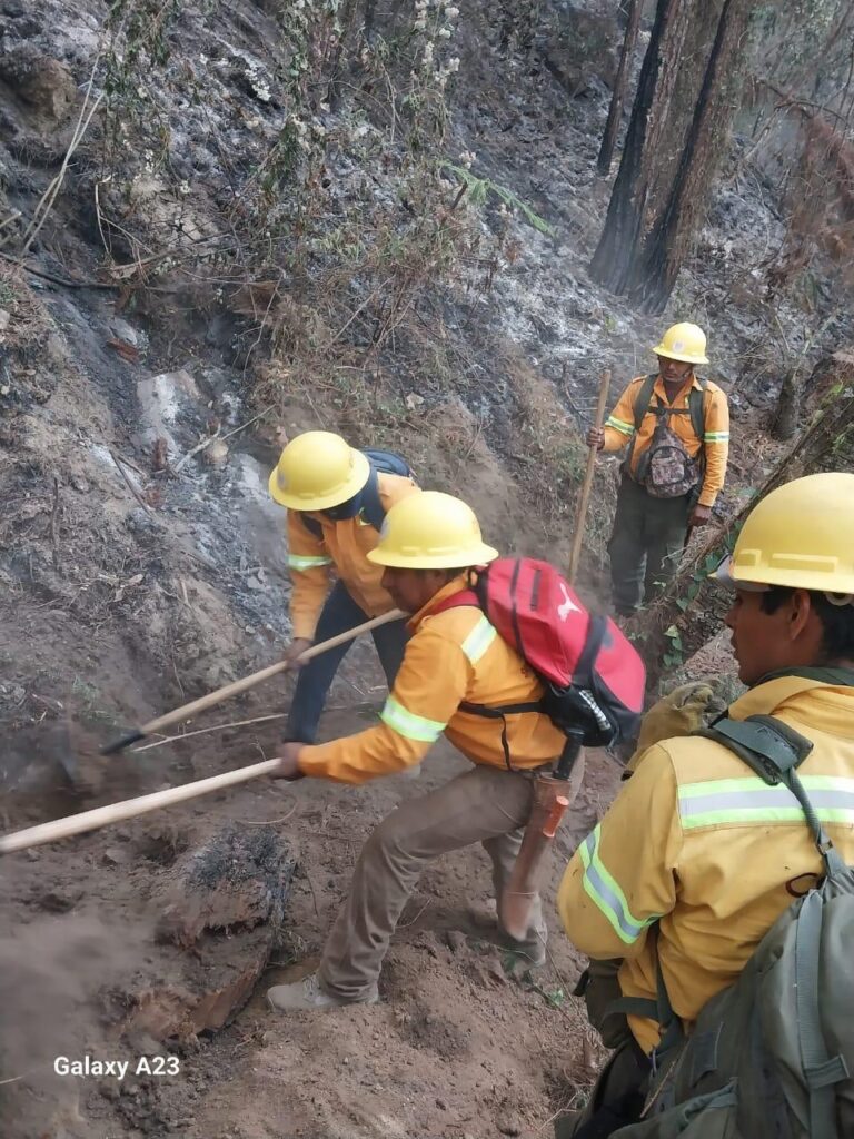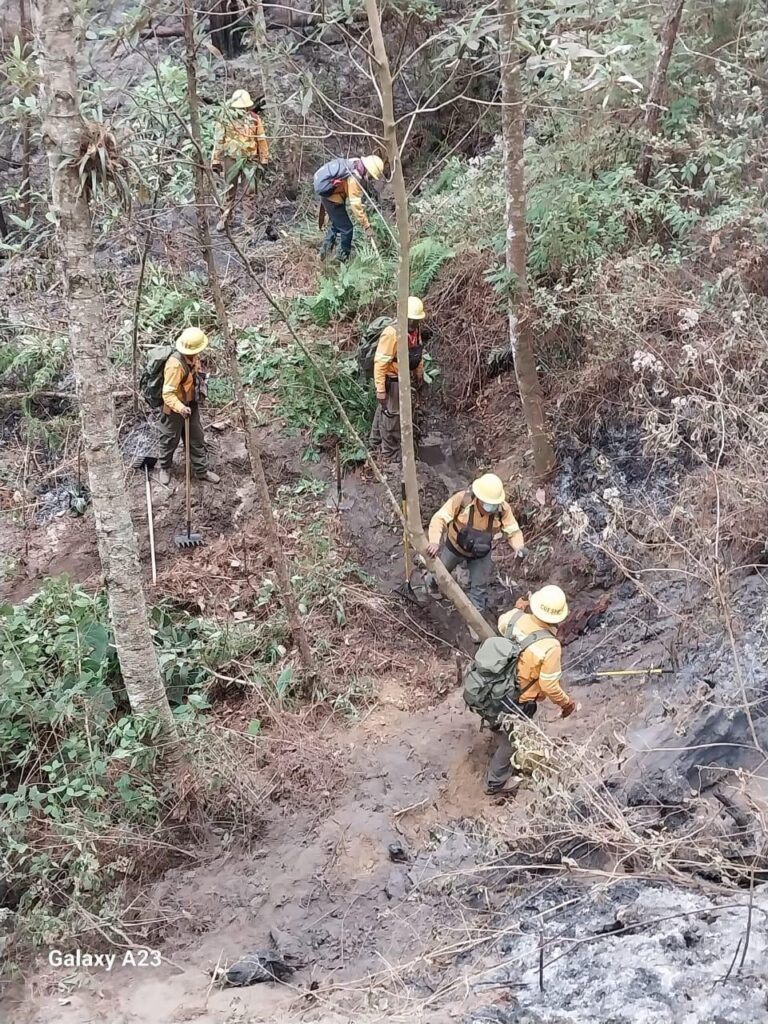 En el lugar se realiza la apertura, así como la rehabilitación de brechas cortafuego con la finalidad de impedir el avance de las llamas activas hacia otras zonas, y evitando así la afectación de mayor ecosistema en la localidad.