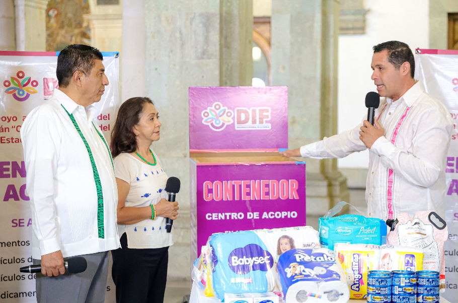 Por su parte, Irma Bolaños Quijano invitó a la sociedad oaxaqueña a abrir su corazón y realizar donaciones de alimentos no perecederos, artículos de limpieza, artículos de aseo personal y medicamentos no caducados.