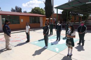 Recomendó a la población estudiantil y docente, así como a las madres y padres de familia a que desde los espacios donde se encuentren pongan en práctica los conocimientos sobre el actuar en caso de una contingencia como son los sismos, ya que, como parte de esta práctica, se activará el sonido de la alerta sísmica.