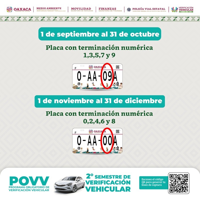 Tlalixtac de Cabrera, Oax. 4 de noviembre de 2025.- La Secretaría de Medio Ambiente, Biodiversidad, Energías y Sostenibilidad convoca a quienes poseen vehículos con terminación de placa en número par, a realizar el proceso correspondiente del Programa Obligatorio de Verificación Vehicular (POVV).