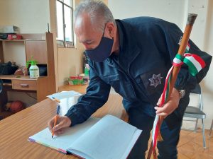 Con el presidente municipal de Santa Catarina Yosonotú, José Aparicio Morales, el Secretario refrendó su compromiso de trabajar en coordinación con el heroico cuerpo policial de seguridad pública estatal para que, en el marco de la ley y el respeto a la autonomía de los pueblos originarios, se fortalezca la paz social.
