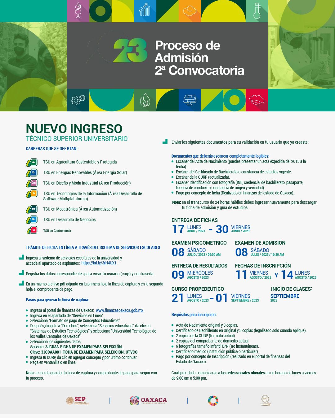 San Pablo Huixtepec, Oax. 18 de abril de 2023.- La Universidad Tecnológica de los Valles Centrales de Oaxaca (UTVCO) publicó la segunda convocatoria de nuevo ingreso para las y los jóvenes que están por egresar del nivel medio superior puedan estudiar alguna de las cinco ingenierías y dos licenciaturas que oferta esta casa de estudios.