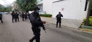 De acuerdo al parte policial y conforme a un reporte recibido al Número de Emergencias 9-1-1, fuerzas estatales de seguridad efectuaron el aseguramiento de dos personas con portación de arma de fuego, quienes fueron identificados como escoltas del detenido.