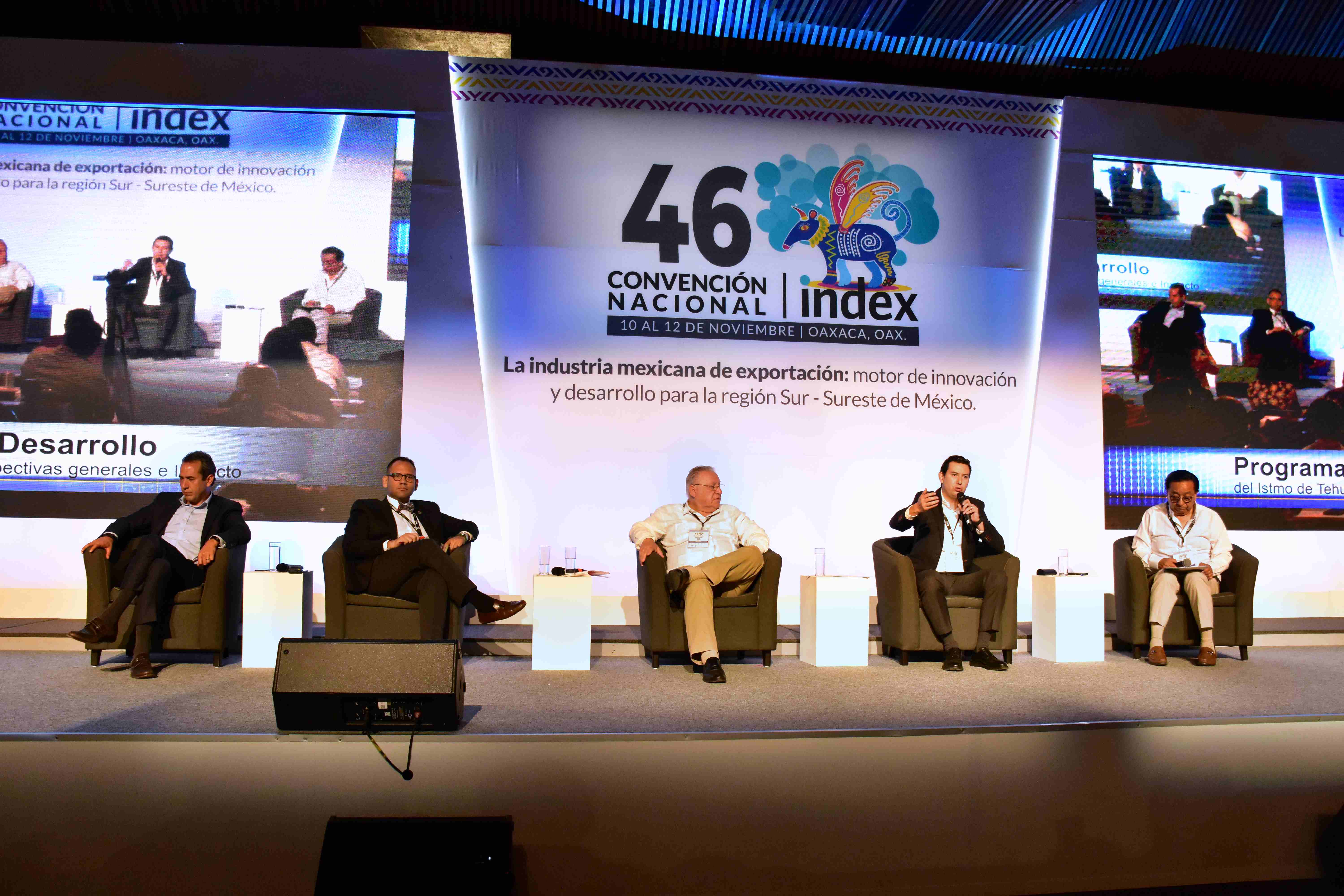 Oaxaca de Juárez, Oax. 12 de noviembre de 2019.- Como parte de las actividades de la 46 Convención Nacional de la Industria Maquiladora y Manufacturera de Exportación (INDEX), se realizó el panel “Programa para el desarrollo del Istmo de Tehuantepec”, un proyecto que convertirá al Sur-Sureste del país en una región clave para el comercio global y que se realiza en coordinación con el Gobierno Federal y el Estado de Veracruz.