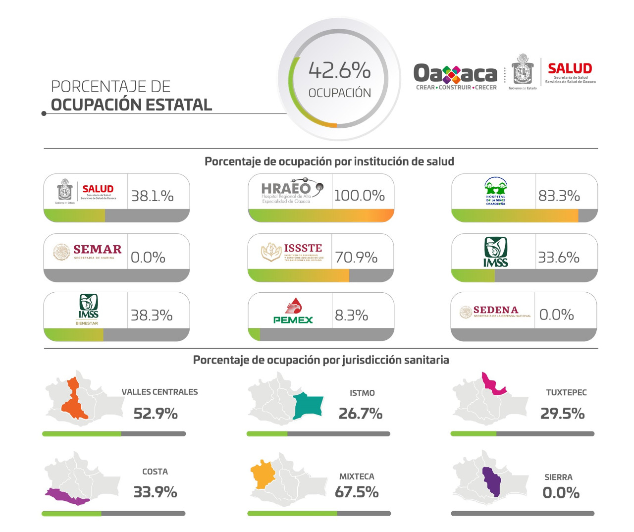 - Reporta red hospitalaria 42.6% de ocupación de camas