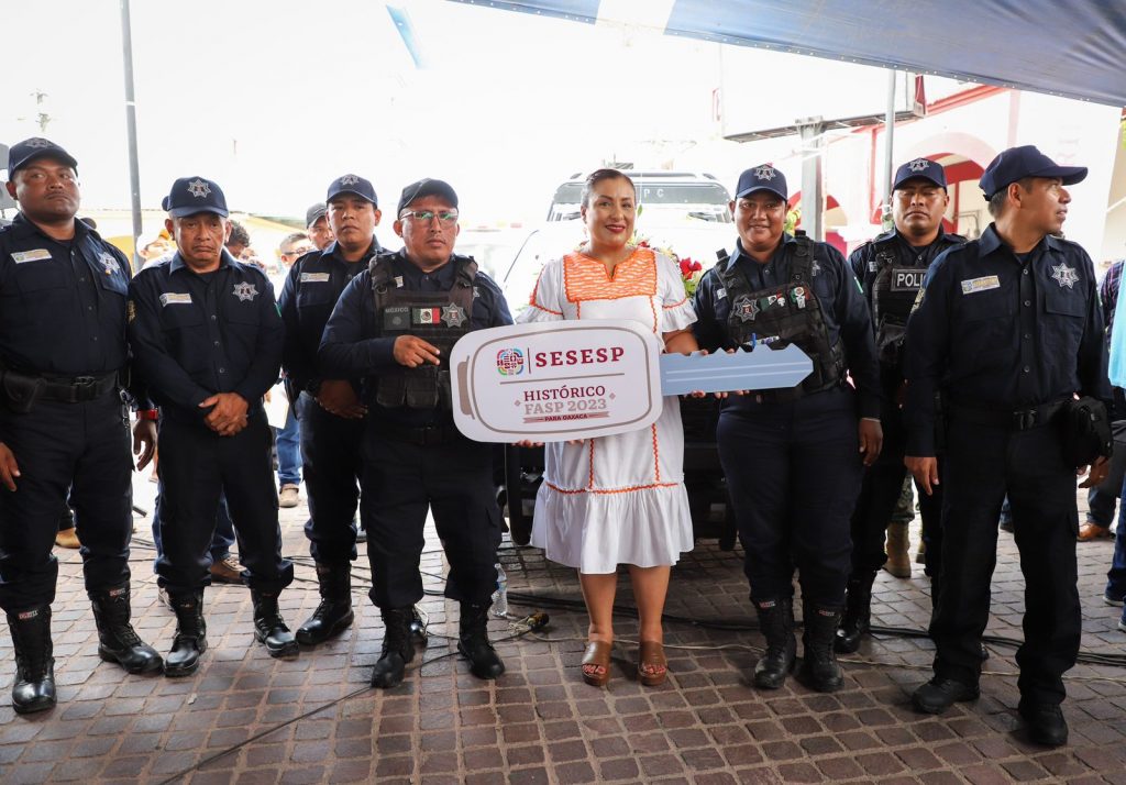 Respecto al fortalecimiento de la labor policial en materia de equipamiento, la titular del SESESP entregó dos patrullas a los municipios de Santiago Pinotepa Nacional y San Pedro Pochutla, que suman en total ocho vehículos otorgados al mismo número de municipios en todo el estado, durante la última semana.