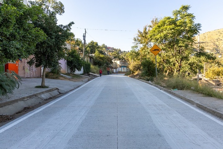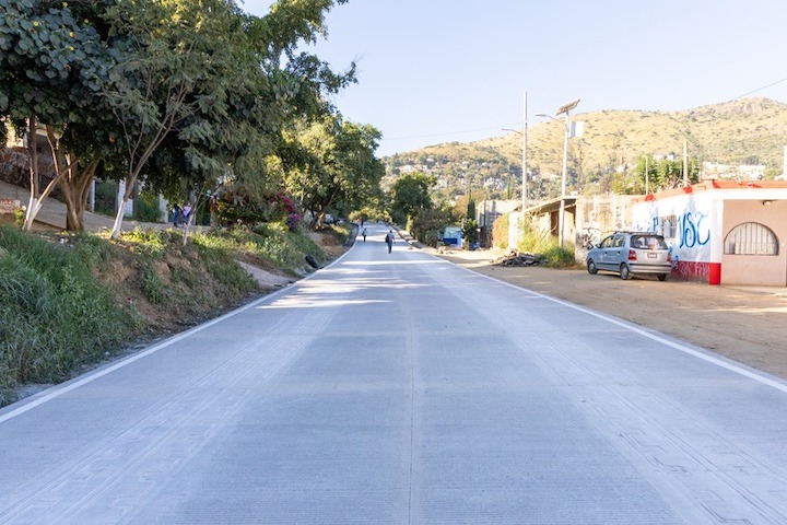Los trabajos realizados por Caminos Bienestar del Gobierno de Oaxaca incluyen 30 mil 870 metros cuadrados de pavimento con acabado estampado y rayado. La obra beneficiará directamente a habitantes de los municipios de Oaxaca de Juárez y Santa Cruz Xoxocotlán.