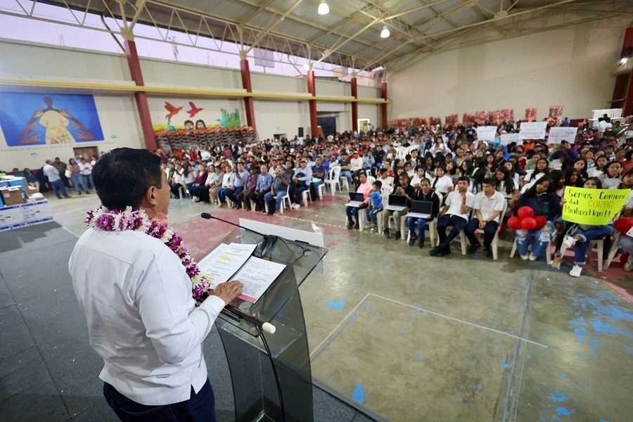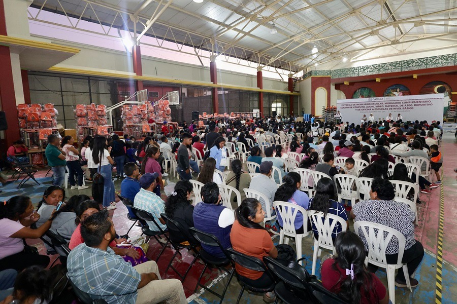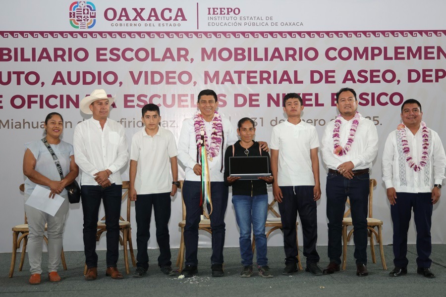 Miahuatlán de Porfirio, Oax. 31 de enero de 2025.- Más de 4 mil estudiantes de 45 instituciones educativas de nivel básico de la Sierra Sur fueron beneficiados con la entrega de mobiliario escolar y equipo de cómputo que el Gobernador Salomón Jara Cruz encabezó en cumplimiento a su palabra empeñada con la educación.