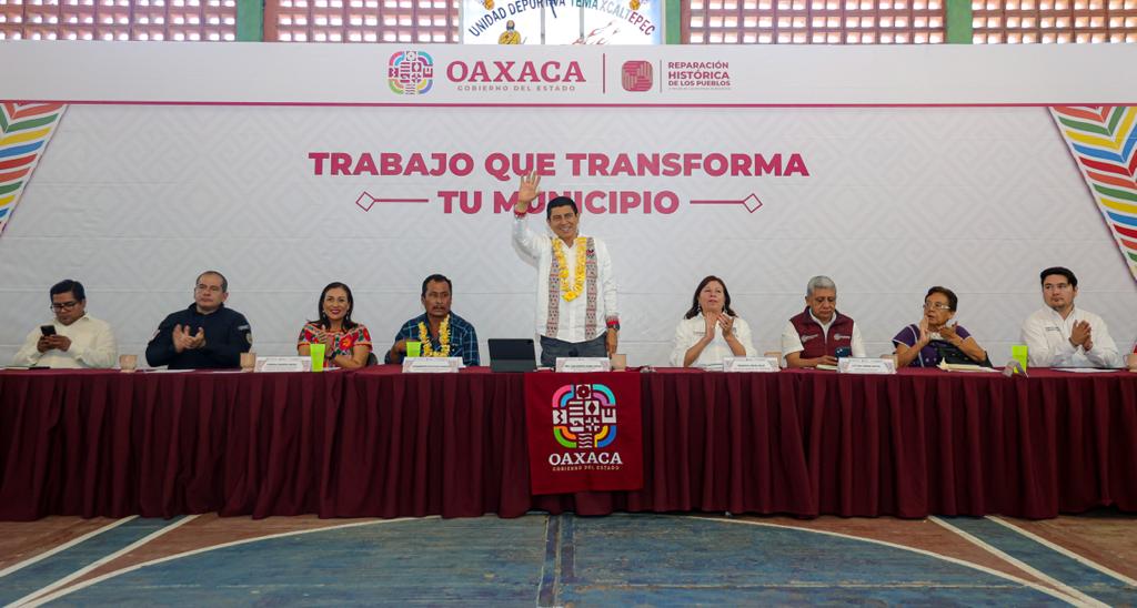 Santa María Temaxcaltepec, Oax. 20 de enero de 2024.- Hasta la zona chatina del estado, el Gobernador Salomón Jara Cruz llegó junto a su equipo de trabajo para informar que a través del esquema Trabajo que Transforma tu Municipio, de manera directa y sin intermediarios, se destina 18 millones 407 mil pesos para Santa María Temaxcaltepec.