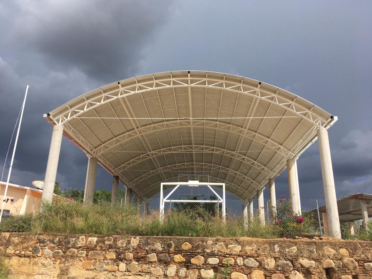 Es así como se realizó la construcción del techado de una cancha de usos múltiples en la Escuela Primaria Francisco I. Madero, perteneciente al barrio La Guadalupe, en Trinidad Zaachila, en donde se invirtieron 2 millones 016 mil 960 pesos, en beneficio de 2 mil 450 alumnas y alumnos.