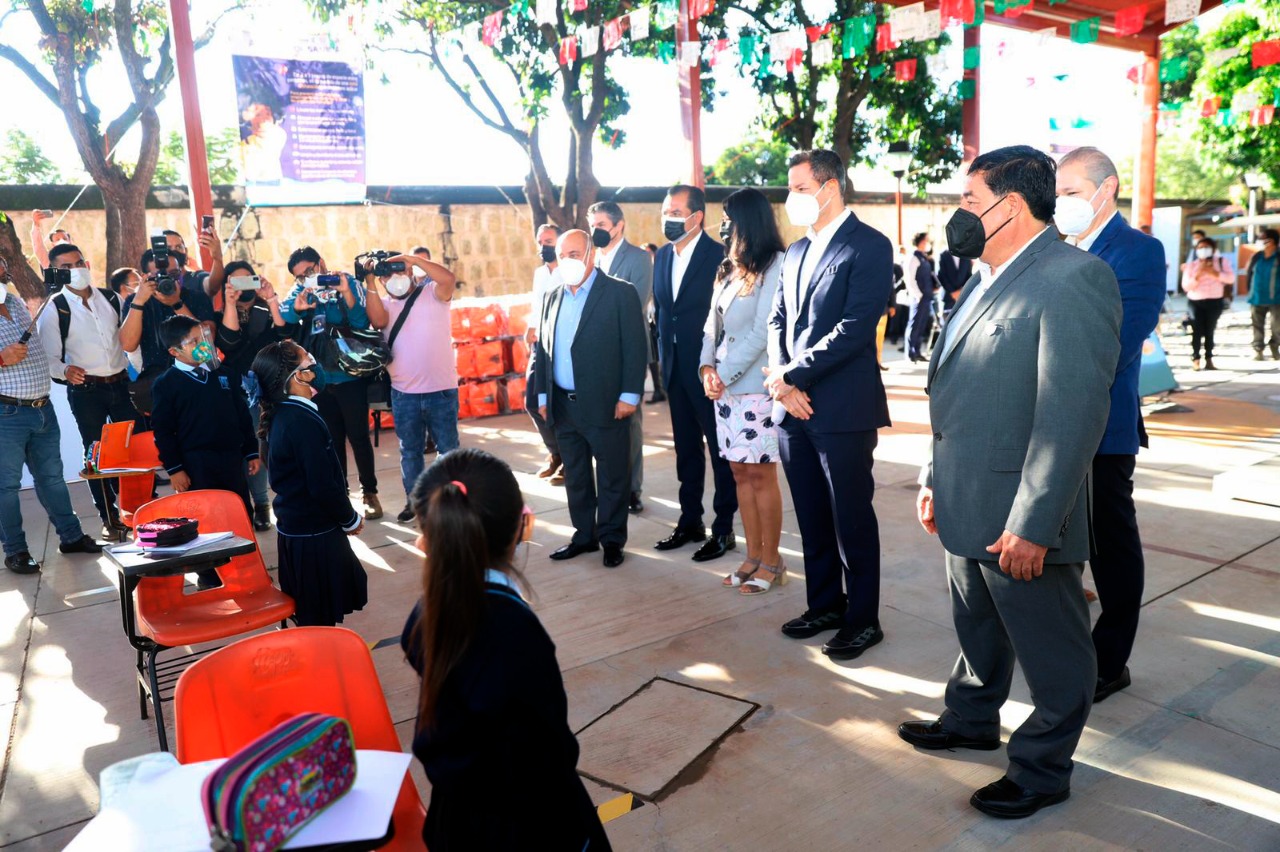 En tanto, Cortés Basurto dijo que es un día histórico para la educación en México y Oaxaca, ya que este regreso a clases es un gran reto. “Para muchas niñas, niños y jóvenes la escuela es el lugar más seguro que tienen, es por ello que es importante este regreso a las aulas, sin olvidar las reglas de salud para seguir cuidándonos y cuidar a los demás”, refirió.