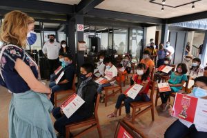 Oaxaca de Juárez, Oax. 07 de septiembre de 2021.-Para incentivar la creatividad e innovación en las nuevas generaciones, la señora Ivette Morán de Murat, presidenta honoraria del Sistema DIF Oaxaca, entregó tabletas electrónicas a 23 niñas y niños ganadores del XXI Premio Estatal de Arte Popular “Benito Juárez” 2021.