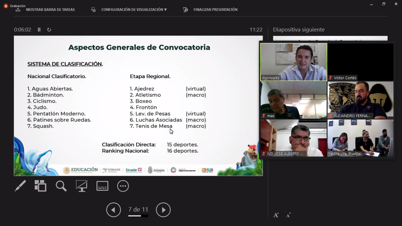 Oaxaca de Juárez, Oax. 14 de abril de 2021.- Con la finalidad de definir sedes y participación de los deportes que clasificarán al regional y macro regional de los Juegos Nacionales Conade, integrantes de la Región VII comprendida por Veracruz, Puebla, y Oaxaca, así como por la Universidad Nacional Autónoma de México (UNAM), realizaron una reunieron virtual para tomar acuerdos.