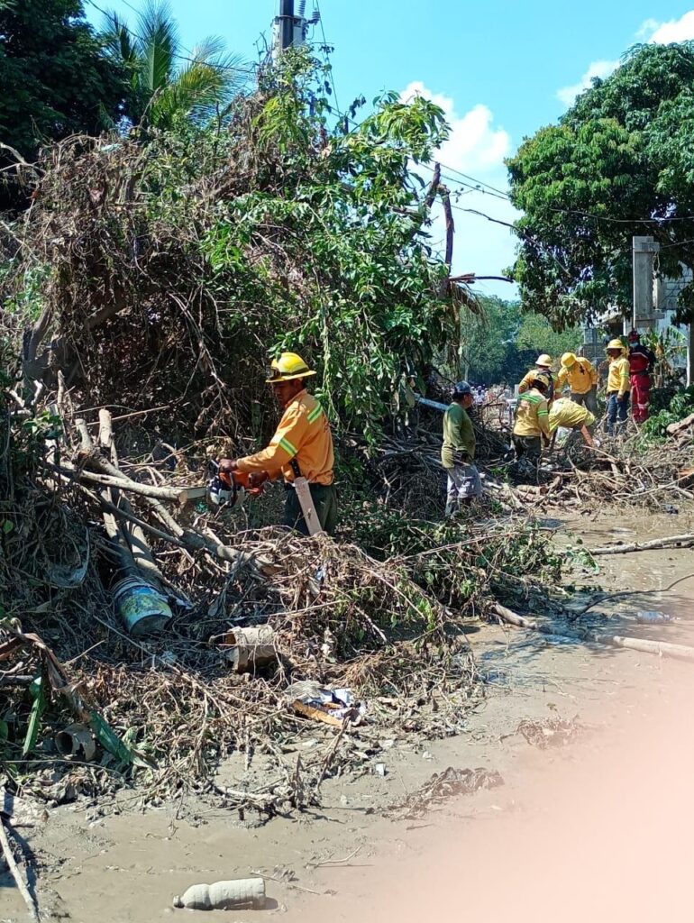 Álamo Temapache, Ver. 17 de octubre de 2025.- Por instrucciones del Gobernador Salomón Jara Cruz, la Comisión Estatal Forestal (Coesfo) se sumó a las acciones de auxilio en el estado de Veracruz, mediante el despliegue de brigadas de combatientes forestales que colaboran en tareas de limpieza y recuperación tras las intensas lluvias registradas en ese territorio.