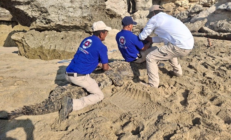 Oaxaca de Juárez, Oax. 6 de abril de 2026.- La Coordinación Estatal de Protección Civil y Gestión de Riesgos (CEPCyGR) informa que personal de Protección Civil del municipio de San Pedro Mixtepec realizó la captura de un cocodrilo de aproximadamente 3 metros de longitud en Playa Bacocho.