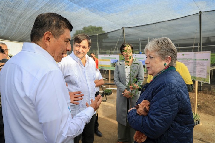Santa Cruz Xoxocotlán, Oax. 3 de octubre de 2025.- En el marco de la visita a Oaxaca de la titular de la Secretaría de Medio Ambiente y Recursos Naturales (Semarnat) del Gobierno de México, Alicia Bárcena Ibarra; el Gobernador Salomón Jara Cruz dio a conocer las acciones impulsadas en materia de conservación del patrimonio natural.