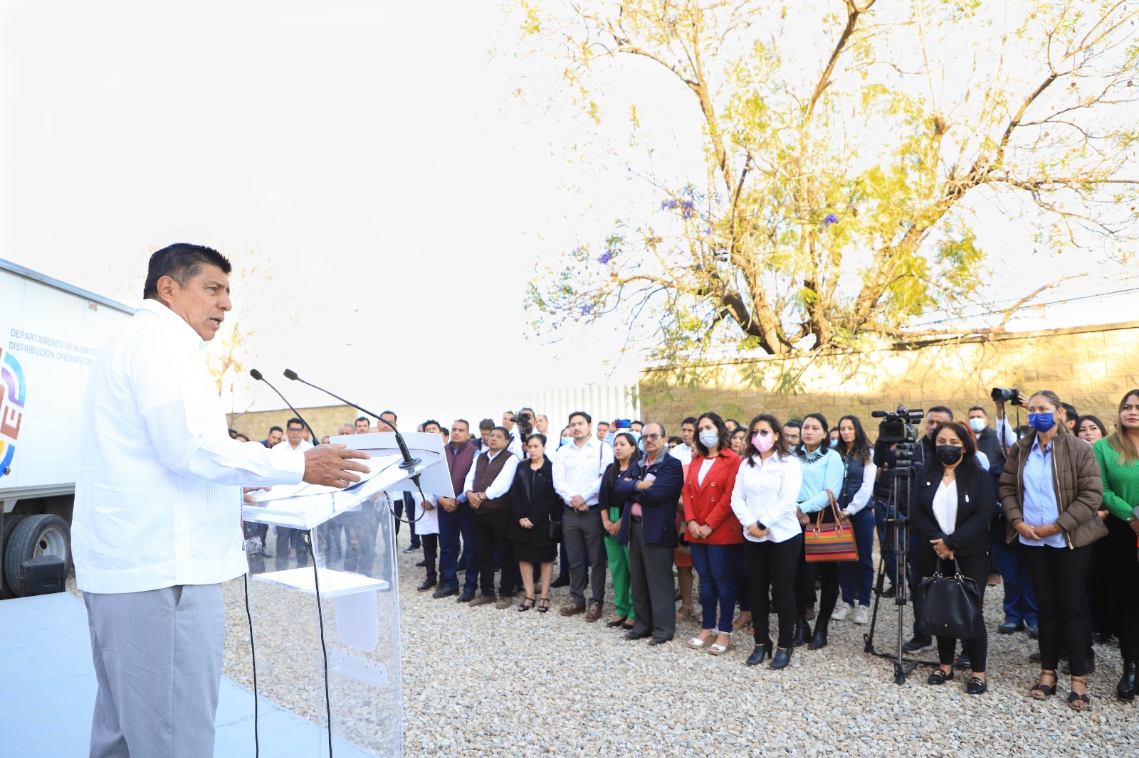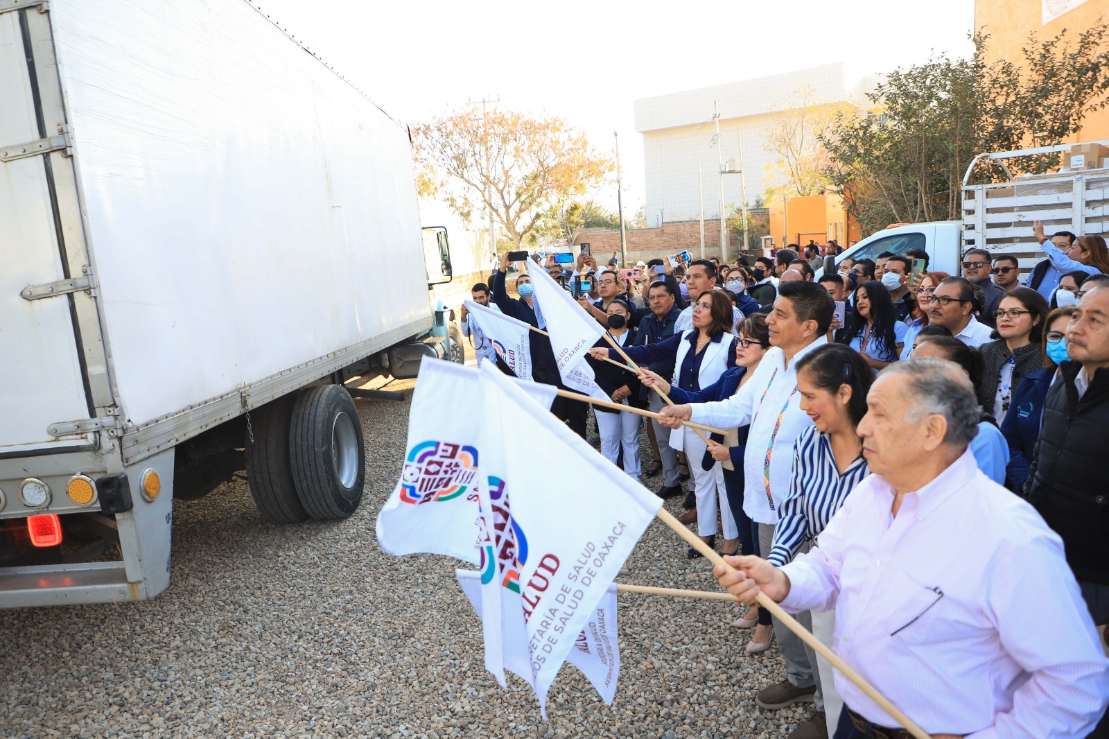 • El Gobernador Salomón Jara Cruz dio el banderazo de salida a 11 unidades que distribuirán medicamentos e insumos a las unidades médicas de las seis jurisdicciones sanitarias de los SSO