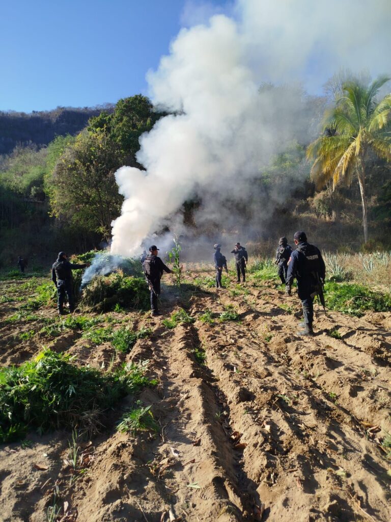Tras implementar las medidas de seguridad correspondientes, el terreno fue intervenido, y la hierba fue destruida mediante incineración; en tanto, se recolectaron muestras que fueron puestas a disposición de la Fiscalía General de la República (FGR) con sede en San Bartolo Coyotepec.