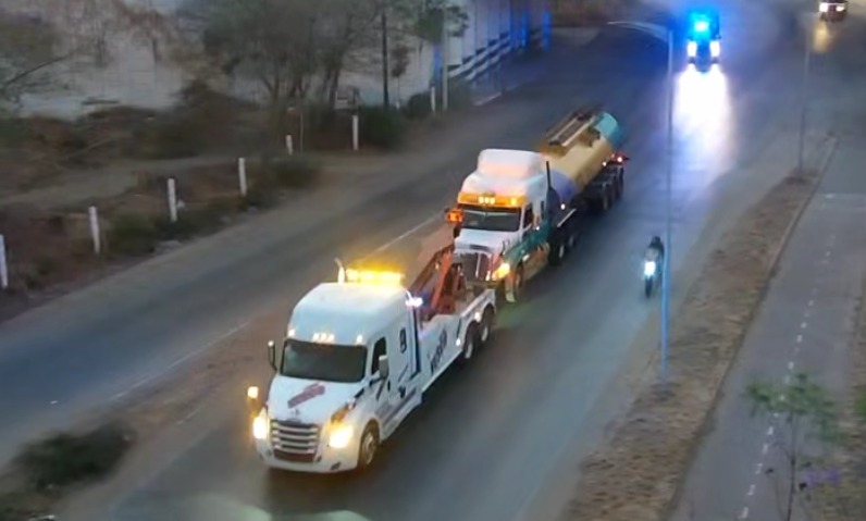 En esa vía federal, en el carril con dirección a Tlacolula de Matamoros, fue localizado un vehículo color amarillo con blanco, que en la parte frontal portaba las placas 127EW4 y en la parte posterior el numeral 930WS1; con dos tanques (uno con capacidad de 19 mil 800 litros y el segundo de 35 mil 500 litros).