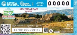 Como parte de la iniciativa para promover el patrimonio arqueológico del país, que impulsan la Lotería Nacional para la Asistencia Pública, la Secretaría de Cultura del Gobierno de México, el Instituto Nacional de Antropología e Historia (INAH), la Coordinación de Memoria Histórica y Cultural de México, y las Secretarías de Turismo de las distintas entidades federativas, a través de la Unión de Secretarios de Turismo de México A. C. (Asetur), se develó el billete conmemorativo de la zona de Monte Albán.