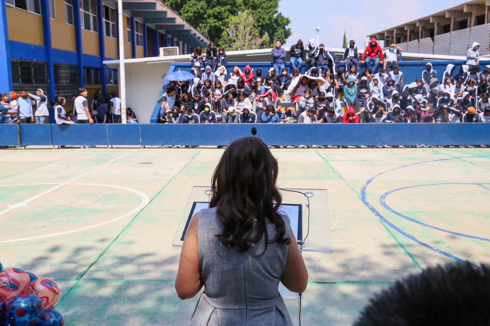 También, la ciudadana Melba Santibañez y el equipo directivo de la Preparatoria 5: Raquel García Ramírez, Víctor Manuel López Allende y Lenin Pérez Gómez.